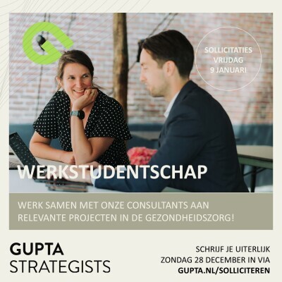 Gupta Strategists biedt praktische oplossingen of innovatieve ideeën voor complexe vraagstukken. Werken bij Gupta betekent dat je als allround strategieconsultant wordt opgeleid, binnen een klein team aan grote projecten werkt en jezelf continu uitdaagt en ontwikkelt tot een strategisch expert binnen de gezondheidszorg.